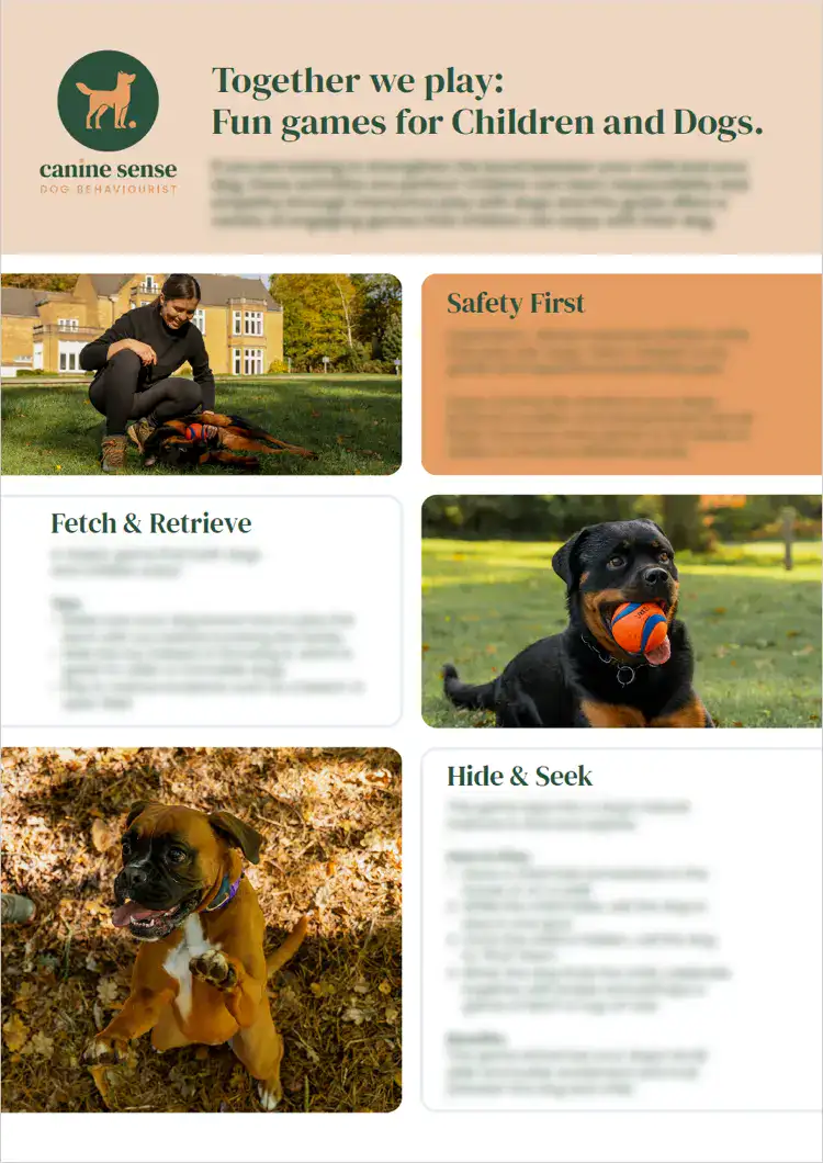 The sessions are varied but most of all fun which our dog loves and she now actually looks forward to her training.